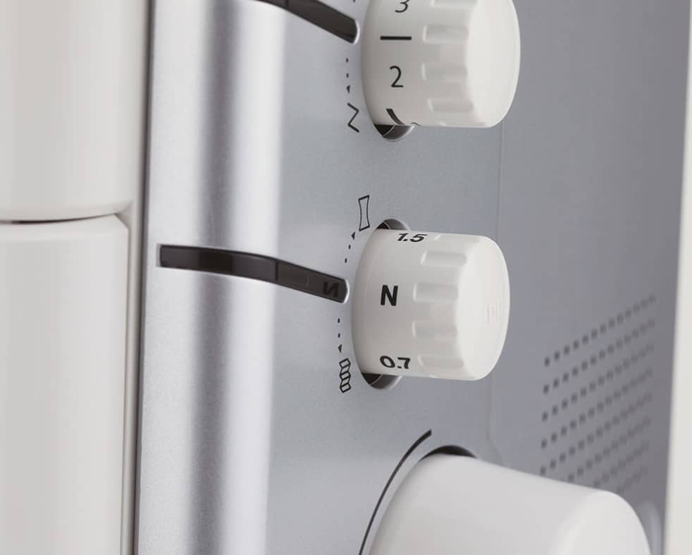 Pas de steeklengte aan door eenvoudig de knop aan de buitenkant van de machine te verdraaien tussen 1 en 4 mm.